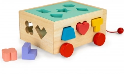 Het speelgoed heeft speciale openingen aan de zijkanten om de juiste vorm aan de opening te koppelen. Het kind maakt kennis met verschillende vormen en leert basiskleuren herkennen.