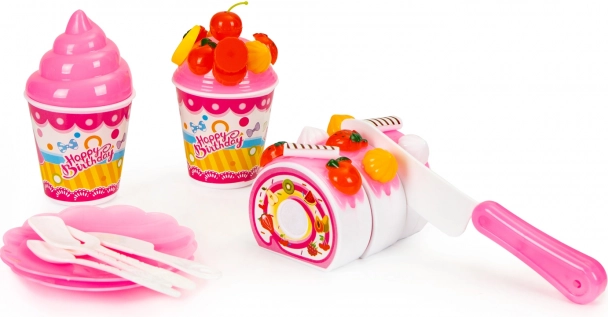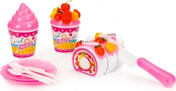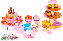 Naast de taart bevat de set diverse zoete accessoires die het spel nog aantrekkelijker maken. Bevat koekjes, cupcakes, donuts en ijs in bekers, ideaal voor fantasierijk speelplezier.