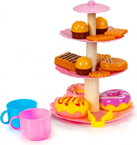 De set bevat een elegante driedelige dessertstandaard waarop kinderen alle zoetigheden kunnen plaatsen. Het is de perfecte toevoeging voor het organiseren van fictieve feestjes en theepartijtjes.