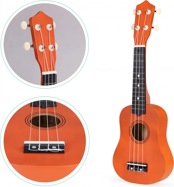 De ECOTOYS-ukulele is een geweldige keuze voor jonge muzikanten. Dankzij de compacte afmetingen en lichte constructie ligt hij prettig in kleine handen, terwijl de nylonsnaren comfortabel aanvoelen. Het instrument laat zich moeiteloos stemmen, zodat kinderen zowel eenvoudige als wat moeilijkere liedjes kunnen spelen.