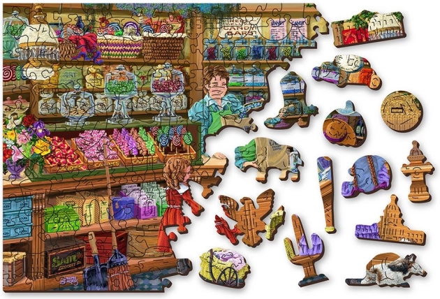 Ontdek de charme van een nostalgisch patisseriemotief met de houten puzzel WOODEN CITY Zoete Avonturen 2-in-1. Dankzij de precieze lasersnede zijn de randen glad en splintervrij en voelt het puzzelen prettig aan. De puzzel is dubbelzijdig – aan de voorzijde leg je een kleurrijke afbeelding, aan de achterzijde een herhalend patroon dat ideaal is om op vorm te puzzelen.