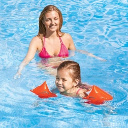 De armbanden zijn gemaakt van duurzaam vinyl (PVC), hebben gemakkelijk te bedienen ventielen voor snel opblazen en leeglaten en de opvallende oranje kleur zorgt ervoor dat kinderen goed zichtbaar zijn in het water. Aanbevolen voor een gewicht van 18–30 kg en een leeftijd van 3–6 jaar.
