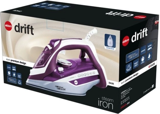 Het Eldom Drift stoomstrijkijzer biedt de ideale combinatie van prestaties en comfort dankzij innovatieve functies. Het is uitgerust met het ANTI DRIP-systeem, dat druppelvorming voorkomt wanneer de temperatuur niet hoog genoeg is om stoom te genereren. Met de keramische zoolplaat zorgt het voor een soepele glijbeweging en effectief strijken, zelfs bij de hardnekkigste kreuken.
