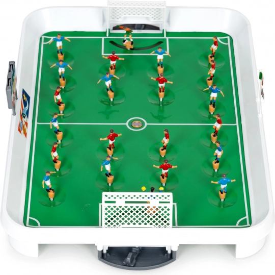 Verkrijg de mini tafelvoetbal die elke voetbalfan zal plezieren. Deze tafelvoetbal is ontworpen voor een dynamisch en snel spel, dat een echte voetbalwedstrijd nabootst. Authentieke stickers met nationale vlaggen maken het mogelijk om internationale toernooien voor kinderen te creëren.