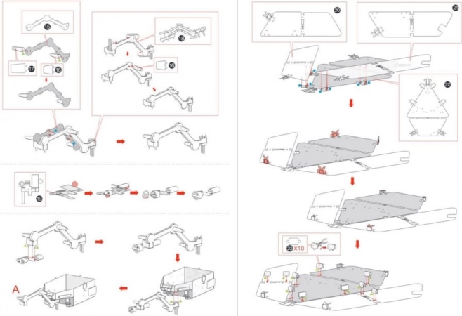 Gebruik voor de montage de onderdelen uit de stalen plaatjes (11 x 11 cm) en volg de meegeleverde handleiding. Verbind de onderdelen met behulp van lipjes en openingen. We raden kleine, fijne tangetjes aan, deze zijn echter niet inbegrepen.