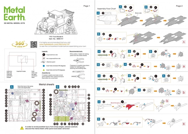 De verpakking bevat 2 grote stalen platen en gedetailleerde montage-instructies. Gereedschap is niet inbegrepen. Zorg voor een kleine snoeischaar en tang om succesvol een realistisch model te bouwen.