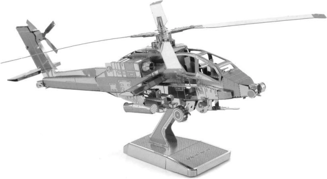 Maak je eigen 3D-model van de AH-64 Apache-helikopter, een geweldige decoratie voor thuis, kantoor of klaslokaal. Metal Earth 3D-puzzels staan bekend om hun nauwkeurigheid en detail dankzij lasergraveren. Van roestvrijstalen plaatjes van 11 x 11 cm bouw je een fascinerende miniatuur van de beroemde Amerikaanse gevechtshelikopter, gebruikt vanaf het einde van de Koude Oorlog tot nu.
