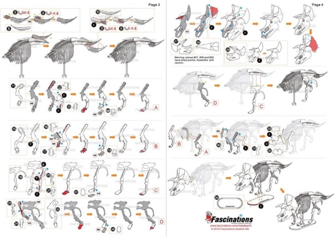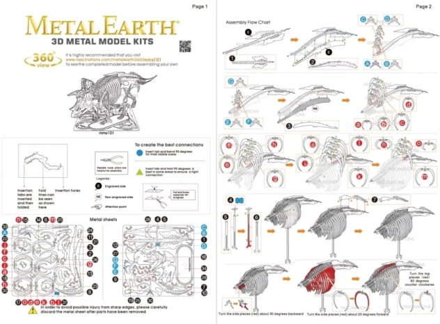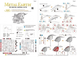 Haal de afzonderlijke onderdelen uit de metalen plaatjes; gebruik indien nodig kleine zijkniptangen (niet inbegrepen). De onderdelen worden met elkaar verbonden via vergrendelingen die bestaan uit een lipje en een opening. Buig het lipje om met behulp van kleine, fijne tangen (niet inbegrepen) en verbind stapsgewijs alle vergrendelingen totdat er een zeer realistisch meesterwerk ontstaat!