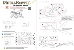 Haal de afzonderlijke onderdelen uit de metalen plaatjes; gebruik indien nodig een kleine zijkniptang (niet inbegrepen). De onderdelen worden met elkaar verbonden via vergrendelingen die bestaan uit een lipje en een opening. Buig het lipje met behulp van kleine, fijne tangen (niet inbegrepen) en verbind stap voor stap alle vergrendelingen totdat er een zeer realistisch meesterwerk ontstaat!