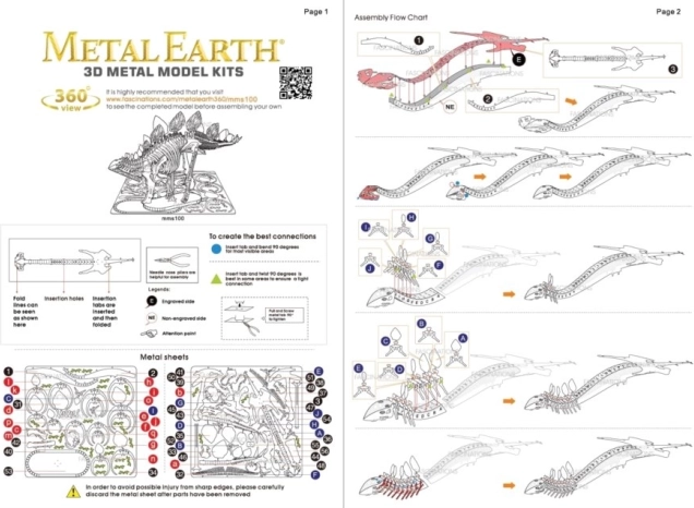 Haal de afzonderlijke onderdelen uit de metalen plaatjes; gebruik indien nodig een kleine zijkniptang (niet inbegrepen). De onderdelen worden met elkaar verbonden via vergrendelingen die bestaan uit een lipje en een opening. Buig het lipje om met een kleine, fijne tang (niet inbegrepen) en verbind stap voor stap alle vergrendelingen totdat er een zeer realistisch meesterwerk ontstaat!