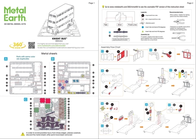 Druk de afzonderlijke onderdelen uit vierkante stalen plaatjes, buig de kleine lipjes en klik ze met behulp van de voorgeboorde gaatjes in elkaar. Er is geen lijm nodig – aanbevolen zijn een tangetje en een vaste hand. Dankzij de precieze lasergravure komen alle karakteristieke details van de driedeks reddingsbus prachtig tot hun recht.