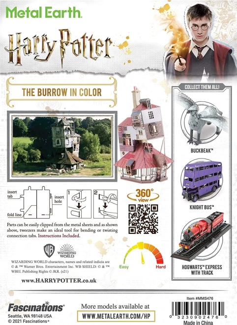 Ontdek de magie van modelbouw met de 3D metalen puzzel METAL EARTH Harry Potter: Het Nest (The Burrow). Uit voorgevormde stalen plaatjes bouw je een gedetailleerde miniatuur met geaccentueerde texturen en authentieke elementen, die dankzij de precieze lasergravure extra opvallen. Het voltooide model is ideaal als decoratie voor bureau of plank en als cadeau voor fans van HARRY POTTER.