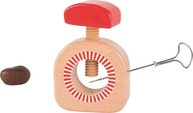 Het gereedschap voor het boren van kastanjes GOKI is een ideale assistent voor alle creatieve zielen. Dankzij de stevige constructie van massief beukenhout kun je eenvoudig en veilig gaten maken in kastanjes en er prachtige decoraties of speelgoed van maken.