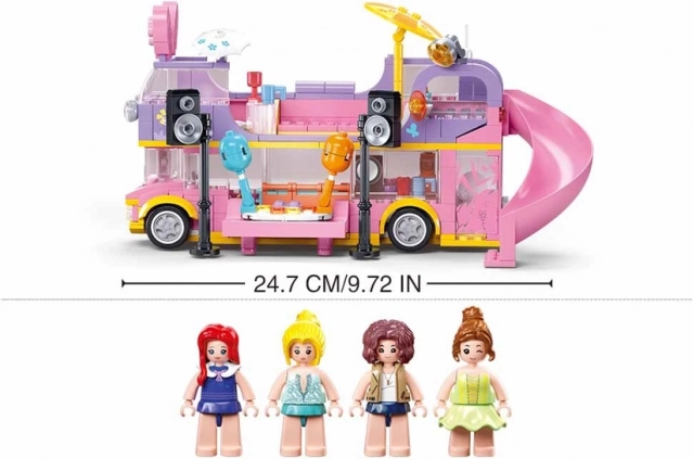 De set bevat 412 onderdelen en 4 minifiguren met beweegbare delen. Dankzij de compatibiliteit met LEGO, Cobi en Mega Bloks kun je de bus gemakkelijk uitbreiden met extra ideeën. Ideaal cadeau voor kinderen vanaf 6 jaar die van bouwsets, kleur en de muziekwereld houden.
