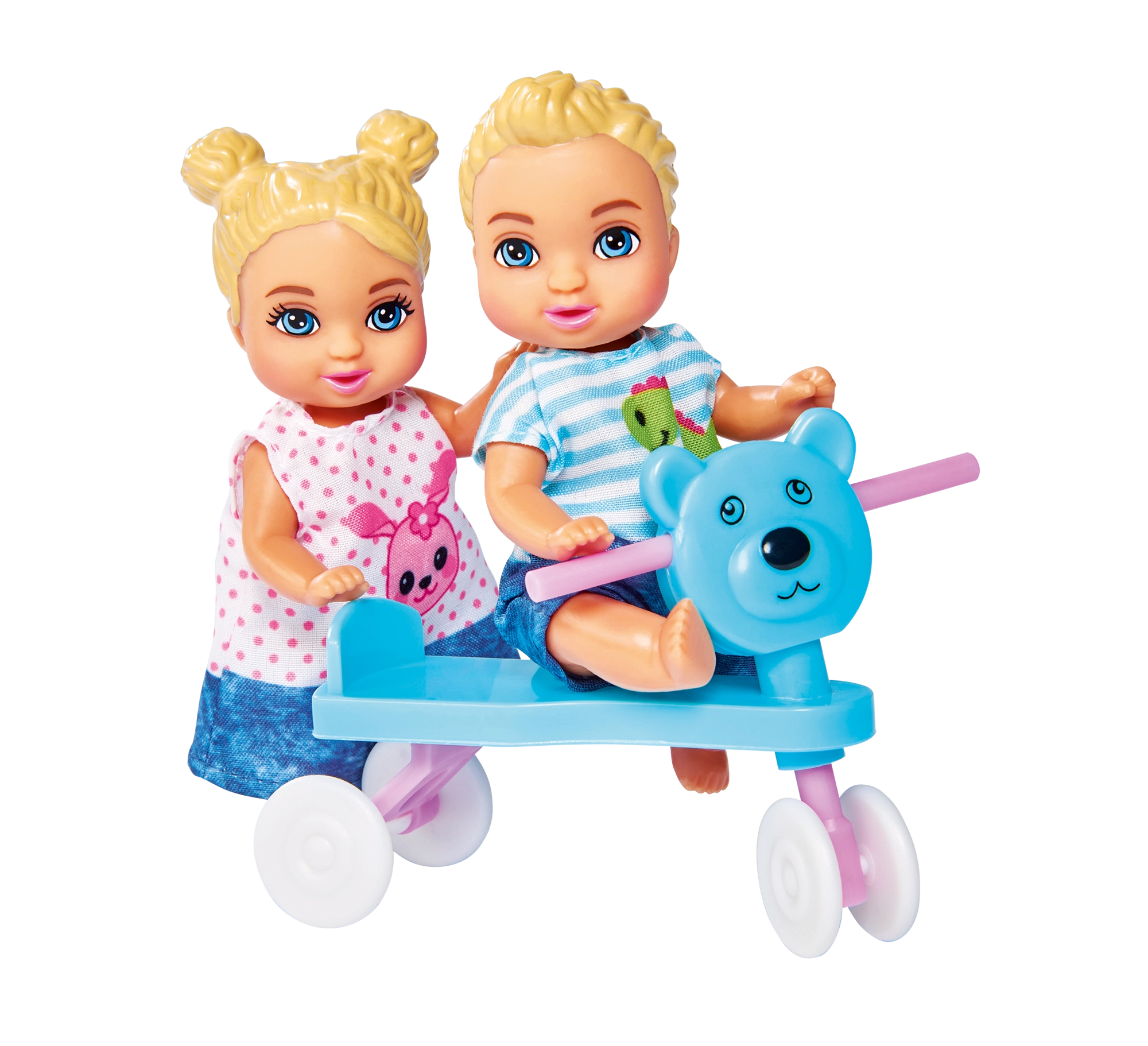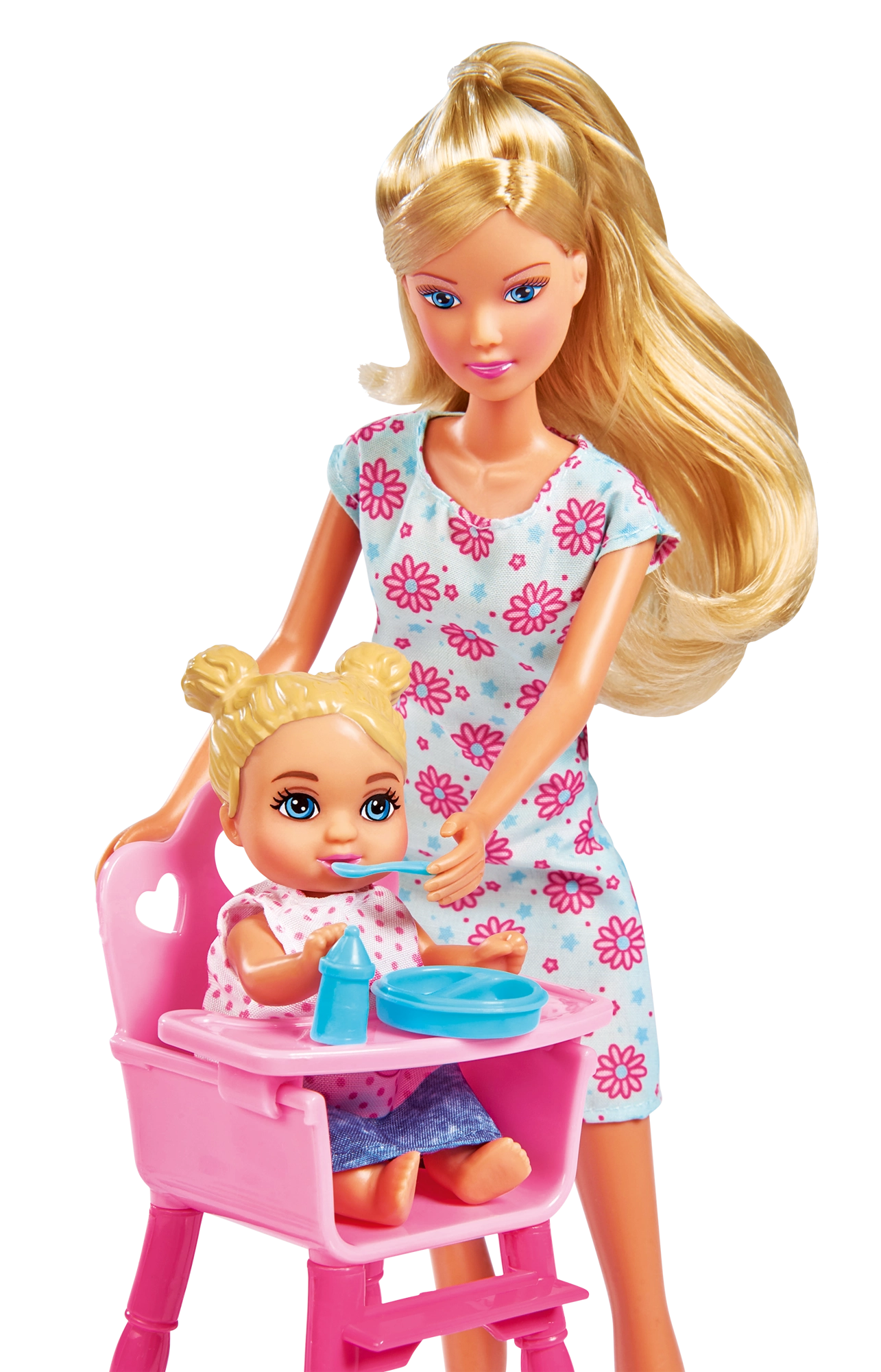 - Steffi-pop (mama), 3 baby’s, bedje/wieg, kinderstoel, 2-in-1 kinderwagen, draagzak, loopfiets/step, speelgoed en accessoires voor het voeden (flesje, schaaltje, bestek), speen, bijtspeeltjes