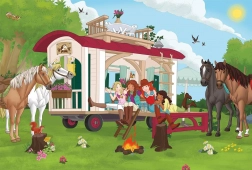 Duik in de wereld van SCHLEICH met deze kleurrijke puzzel van SCHMIDT, die de sfeer van een kampvuur bij de caravan weergeeft. Dankzij 100 nauwkeurig uitgesneden stukjes is het leggen leuk en bevordert het de fijne motoriek, het geduld en de verbeelding. In de verpakking zit bovendien een origineel figuurtje van een Hannoveraans Schleich-veulen, waar elke jonge paardenliefhebber blij van wordt.