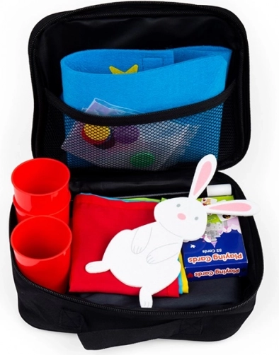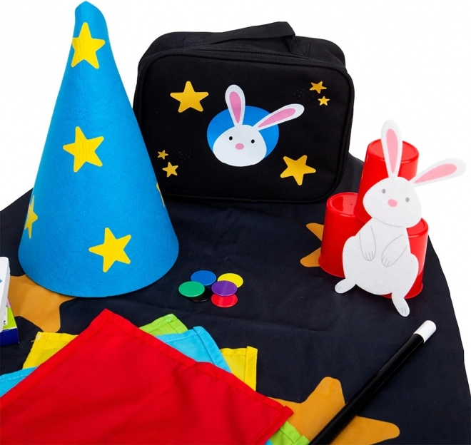 De set bevat klassieke hulpmiddelen voor geliefde trucs – bekers en balletjes, kaarttrucs en het “tevoorschijn toveren” van een konijntje uit de tas. Dankzij de praktische tas hebben jonge goochelaars alles overzichtelijk bij de hand en kunnen ze optreden thuis, bij opa en oma of op een kinderfeestje.