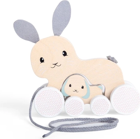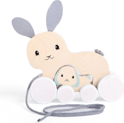 Dit charmante trekfiguur-konijntje met een verstopt jong is de ideale metgezel voor de eerste ontdekkingsreizen in huis. Dankzij de hoogwaardige afwerking van duurzaam gewonnen FSC®-hout en kindveilige verven is het spelen niet alleen leuk, maar ook veilig. Zachte vilten oortjes en staart geven het speelgoed een lieve uitstraling en bieden fijne tactiele prikkels.