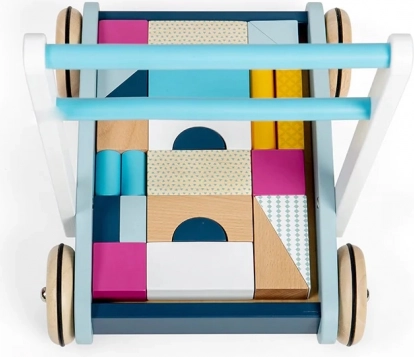 - 2-in-1: loopsteun + creatieve bouwset in één compacte wagen.