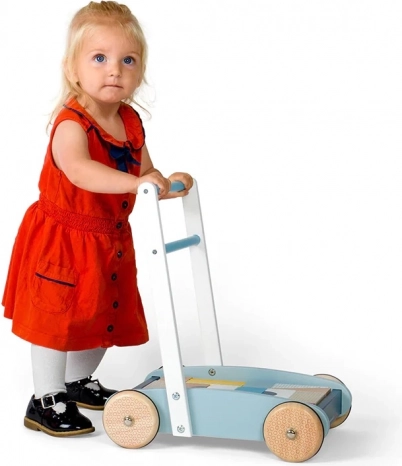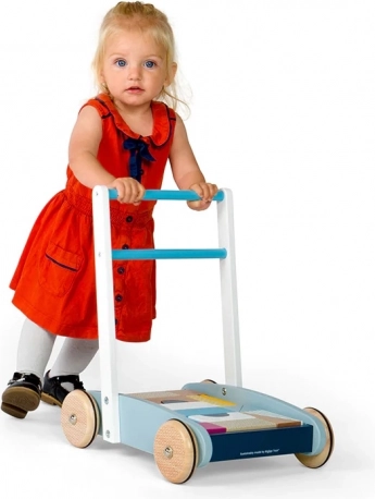 De robuuste houten constructie, goed vast te pakken handgreep en wielen met goede grip helpen kinderen met vertrouwen en veiligheid te lopen.