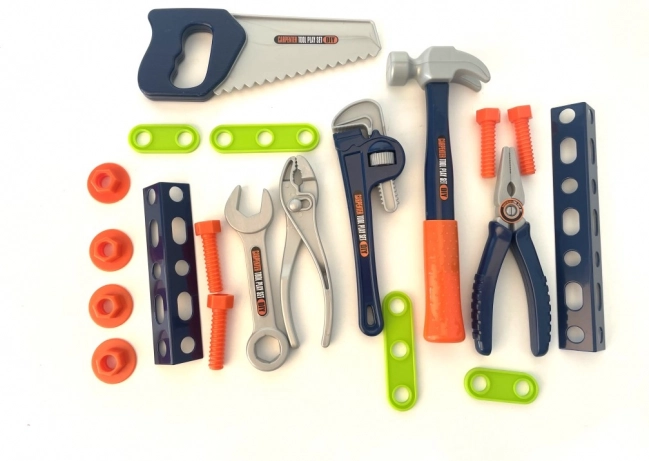 Gereedschapsset voor kinderen met 20 kunststof onderdelen, ideaal voor kleine klussers vanaf 3 jaar.