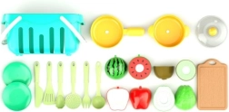 Een leuke en educatieve set met snijbaar fruit en groenten, ideaal voor de ontwikkeling van de verbeelding en motorische vaardigheden van kinderen: