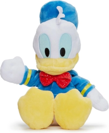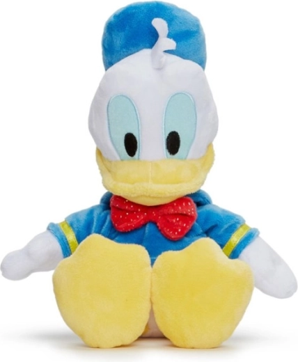 De pluchen eend Donald in zijn klassieke outfit is de perfecte speelkameraad voor de allerkleinsten. Meestal draagt hij een blauw matrozenpak (trui en baret) met een rode vlinderdas. Hoogte: 25 cm.