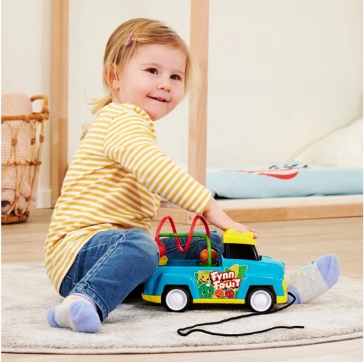 - 2-in-1 peuterspeelgoed dat de fijne motoriek bevordert – de ABC Fynn Fruittransporter heeft een aanhanger met een doolhof met 4 soorten fruit die je kunt duwen en draaien op de lussen om de behendigheid te trainen.