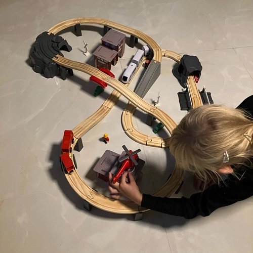 Houten treinbaan 3,2 m – grote set van 57 delen met kraan