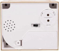 Het compacte formaat van 11,8 × 10 × 9 cm en de voeding met 2× AA-batterijen maken plaatsing overal mogelijk. Eenvoudige bediening, ook geschikt voor jongere kinderen.