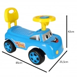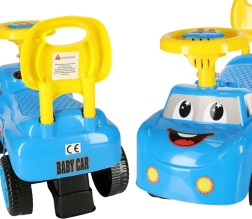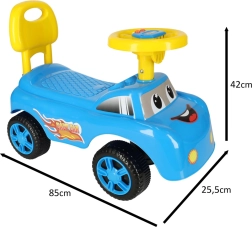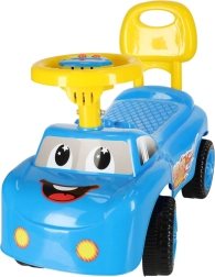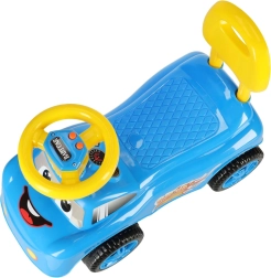 De schattige blauwe loopauto met een glimlach aan de voorkant ondersteunt motoriek, evenwicht en zelfvertrouwen bij de eerste ritjes. Dankzij het lage gewicht is hij makkelijk te dragen en kan het kind hem moeiteloos bedienen. De claxon op het stuur zorgt voor realistische auto-ervaringen.
