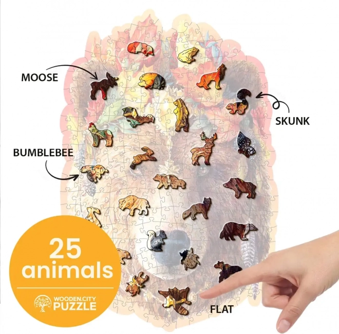 Houten puzzel Stijlvolle Beer van het merk WOODEN CITY biedt een unieke ervaring. Het samenstellen met unieke stukjes in de vorm van dieren en gedetailleerde afwerking vormt een aangename uitdaging voor alle puzzelliefhebbers.