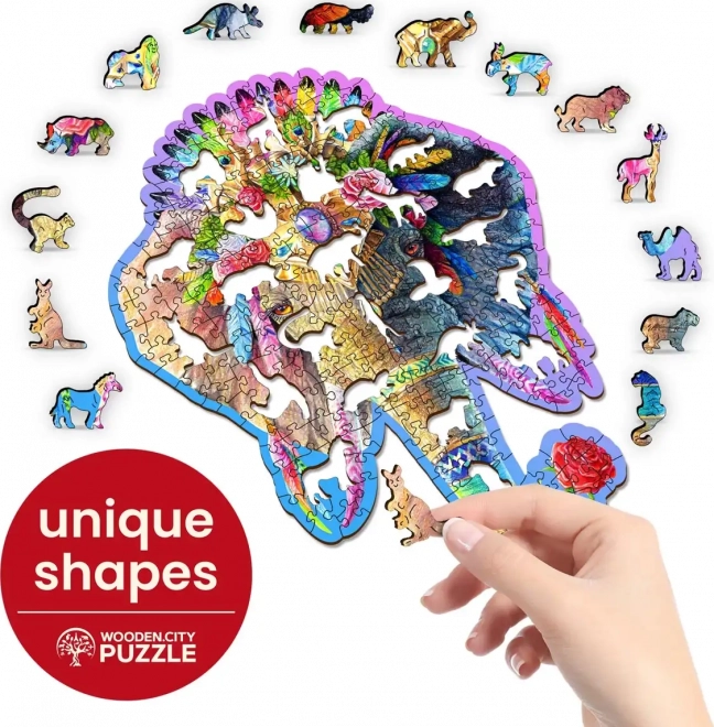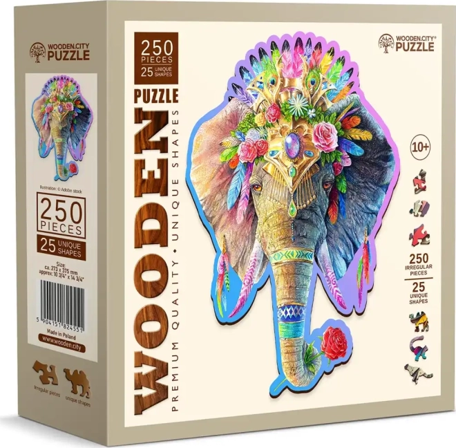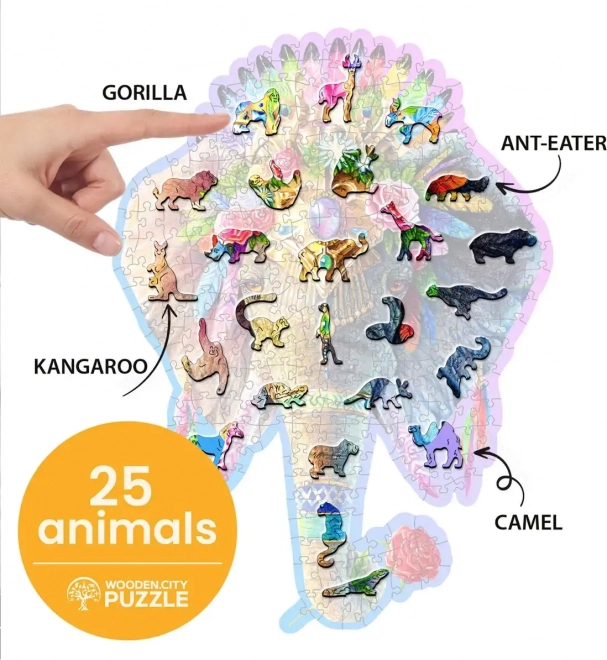 We presenteren u de unieke houten puzzel Elegante olifant van het merk WOODEN CITY. Dankzij de speciaal gevormde stukjes met diermotieven, is het samenstellen ervan een grotere uitdaging dan bij gewone puzzels.