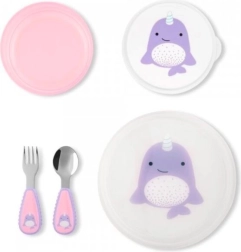 Ondersteun de zelfstandigheid van kinderen bij het eten met onze schattige ZOO Narwal dinerset. Elke set bevat ZOO personages, een bord en een kom met antislipbodem, evenals een geschikte vork en lepel.