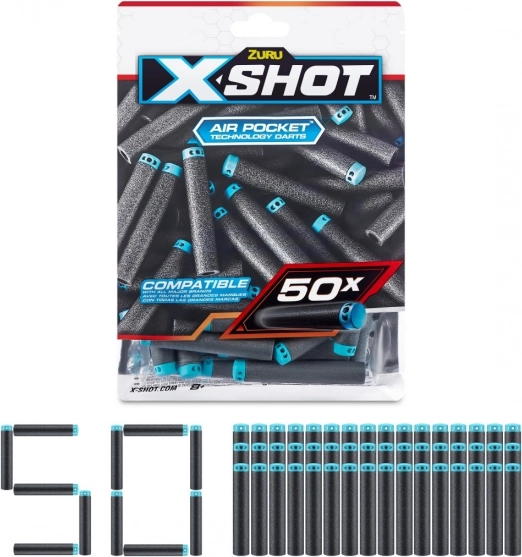 Met deze praktische navulset van 50 pijlen mis je nooit meer een kans! X-Shot pijlen met Air Pocket‑technologie zijn ontworpen voor verder, sneller en nauwkeuriger schieten. X-Shot pijlen zijn compatibel met de meeste toonaangevende merken en bieden topprestaties dankzij de geweldige lichtgewicht schuimtechnologie! Geleverd met een afsluitbare koker voor eenvoudig opbergen na de strijd.