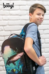 Ontdek comfort en duurzame stijl met de BAAGL eARTh – Haai by LUKERO rugzak. Dankzij het waterafstotende, 100% gerecyclede materiaal blijft je uitrusting veilig bij elk weer, terwijl de opvallende haaiengrafiek direct in het oog springt.