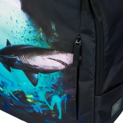 Stijlvolle stadsrugzak van 100% gerecycled waterafstotend materiaal met een haaienmotief van LUKERO. Biedt ergonomisch gevormde rug, lichtgewicht constructie (500 g), inhoud 18 l en een vak voor een 15" laptop. Ideaal voor dagelijks gebruik naar school, werk en in je vrije tijd.