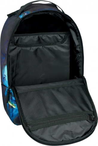 - hoofdcompartiment, intern laptopvak, voorvak met rits, bovenvak met rits