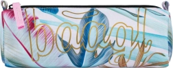 Dankzij de praktische ritssluiting worden al je schrijfwaren veilig opgeborgen. Het etui trekt tevens de aandacht met zijn kleurrijke ontwerp, dat een combinatie van turkoois, goud en roze omvat.