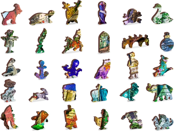 Laser-uitsneden houten puzzel WOODEN CITY met zijn speciaal gevormde stukjes is ongelofelijk leuk. Een deel van de stukjes is gemaakt in de vorm van dieren, gebouwen of voorwerpen, waarvan het eindresultaat wordt versterkt door laser-geaccentueerde details. Deze stukjes kunnen ook los rechtop staan als kleine figuurtjes. Het leggen van een puzzel met verschillend gevormde stukjes is moeilijker en vormt een grotere uitdaging dan het leggen van een klassieke puzzel. Bovendien is de puzzel dubbelzijdig: je kunt leggen op basis van de afbeelding (voorkant) of op basis van de vorm (achterkant met patroon). Het merk WOODEN CITY vergeet naast het unieke puzzelconcept de ecologie niet; bij deze producten vind je daarom geen plastic verpakkingen.