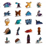 - met uniek gevormde stukjes die bekende gebouwen, voorwerpen of dieren voorstellen, passend bij het thema