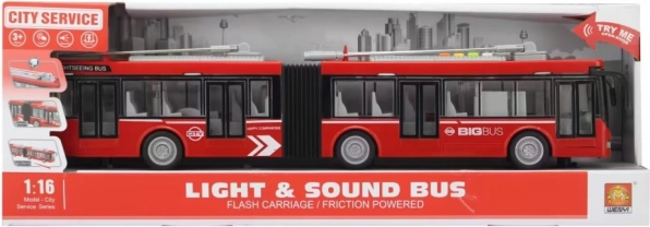 Beleef een realistische rit met onze geknikte trolleybus met traagheidsmotor in schaal 1:16, uitgerust met geluids- en lichteffecten. Batterijen zijn inbegrepen.