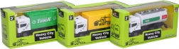 Leuke metalen auto van 11,5 cm met terugtrekmechanisme voor snelle ritjes. Beschikbaar in 3 varianten: vrachtwagen, tankwagen en vuilniswagen.