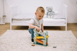 Door de hellende banen en kleine voertuigen bevordert het speelgoed de ontwikkeling van fijne motoriek en hand-oogcoördinatie.