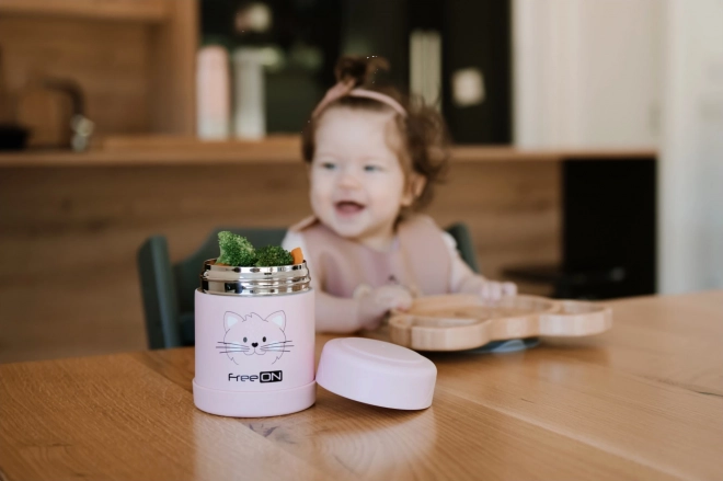 Praktische roze voedingsbox FreeON is ideaal om warme en koude gerechten langere tijd warm te houden. Geschikt voor soepen, groente- of vleesgerechten, waar je ook heen gaat.