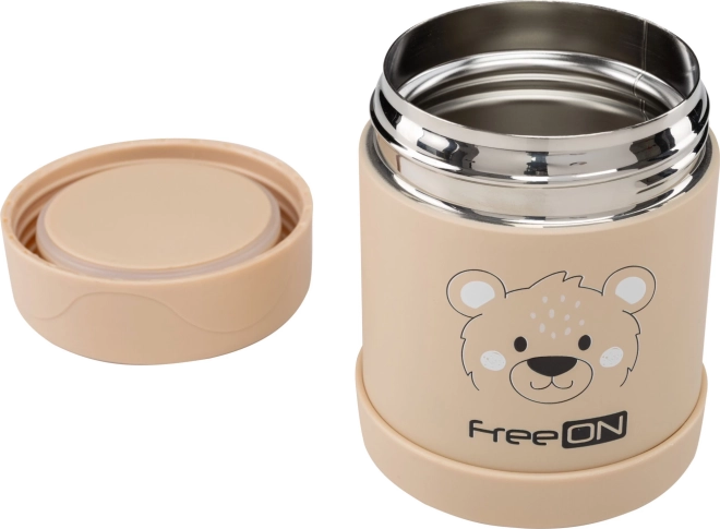 Thermosfles FreeON biedt een capaciteit van 350 ml, wat een optimale hoeveelheid is voor kinderporties. Hij is voorzien van een dubbele roestvrijstalen wand, die de temperatuur lang effectief vasthoudt: