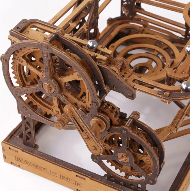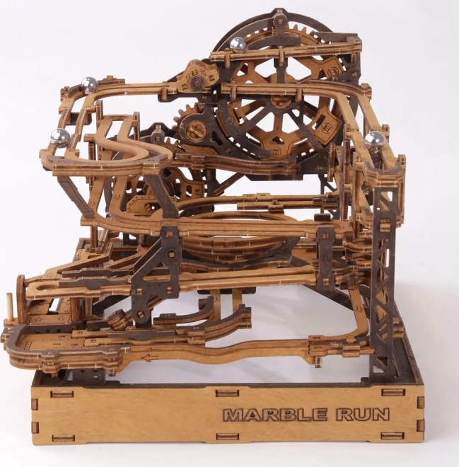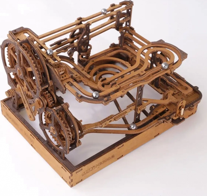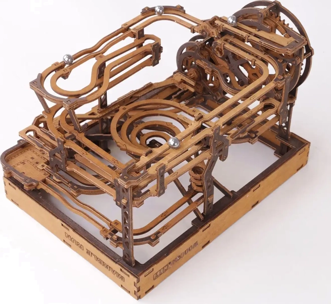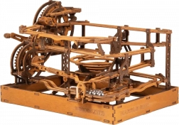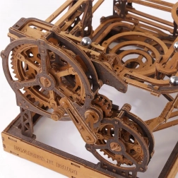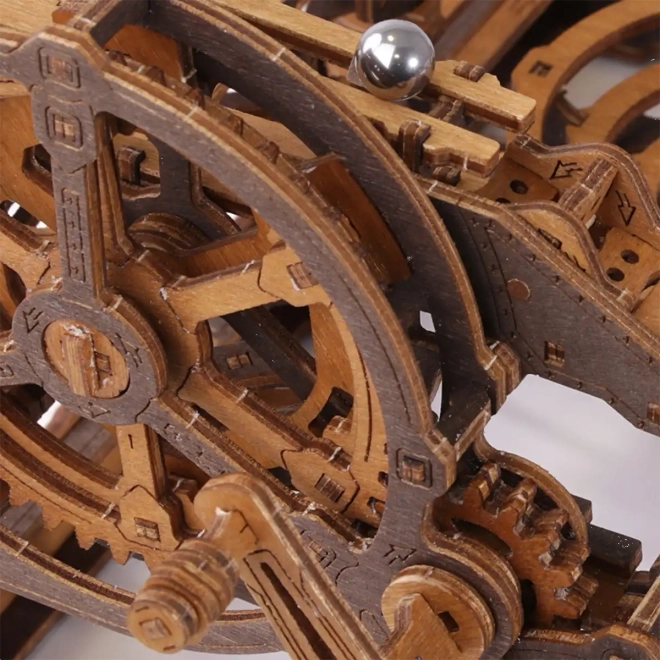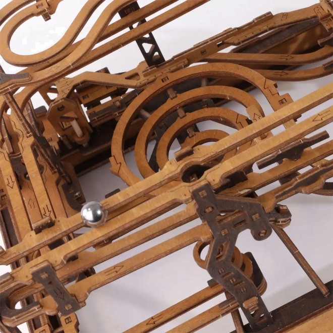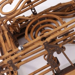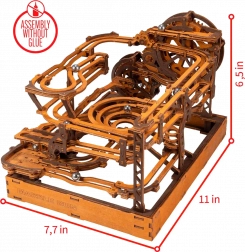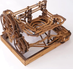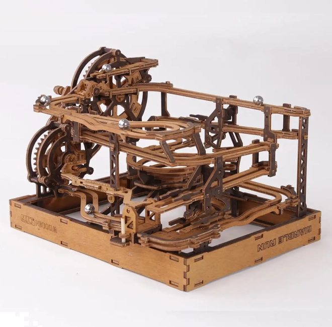 Deze 3D houten puzzel siert niet alleen het interieur, maar biedt ook urenlang plezier en uitdaging. Gemaakt van ecologisch berkenmultiplex met hoge dichtheid, vereist dit model nadenken en vaardigheid tijdens het bouwen. Het ontwerp simuleert een functioneel mechanisme waarbij metalen knikkers door uitgebreide banen lopen.