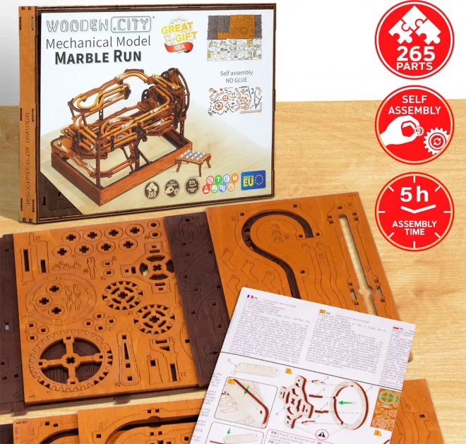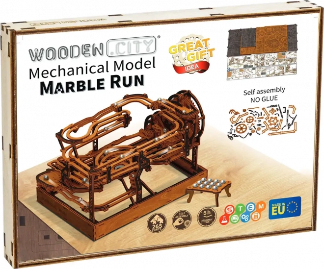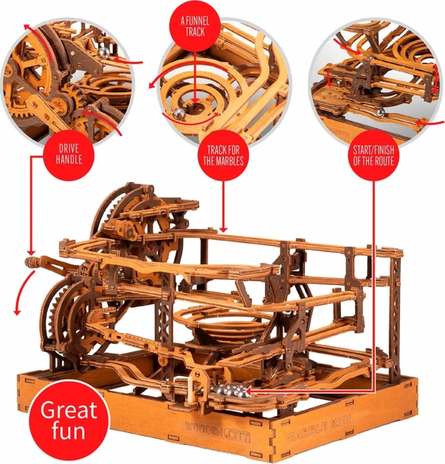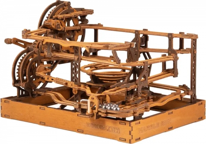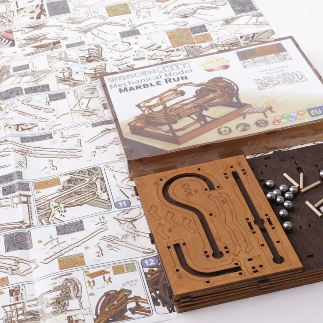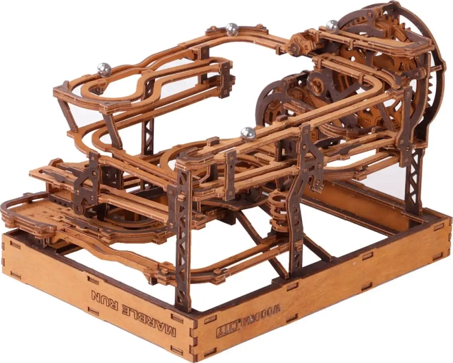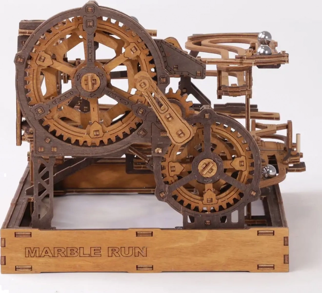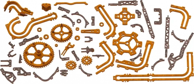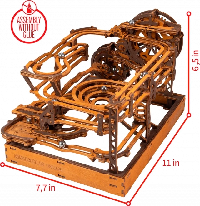 Deze 3D houten puzzel siert niet alleen het interieur, maar biedt ook urenlang plezier en uitdaging. Gemaakt van ecologisch berkenmultiplex met hoge dichtheid, vereist dit model nadenken en vaardigheid tijdens het bouwen. Het ontwerp simuleert een functioneel mechanisme waarbij metalen knikkers door uitgebreide banen lopen.