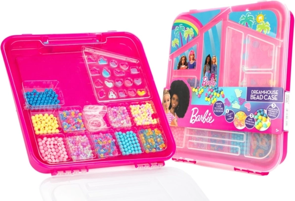 De Barbie sieradenmaakset in een koffertje is ideaal voor kleine kunstenaressen die graag hun eigen accessoires maken. Bevat tien verschillende doosjes vol gekleurde kralen, koordjes voor eenvoudig rijgen en speciale Barbie-kralen die je creaties extra stijl geven. Deze set stimuleert creativiteit en fijne motoriek.