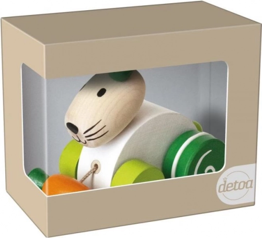 Een schattige trekfiguur in de vorm van een konijn met een wortel ondersteunt de eerste stapjes van je kind. Door het eenvoudig trekken aan het touwtje motiveert het tot bewegen en ontwikkelt het de motoriek. Inclusief eco-natuurlijke verpakking – een geweldig cadeau voor kleine ontdekkers.
